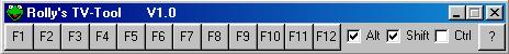 Rolly's TV-Tool connects F-Keys of the keyboard with wav files. Press of a function key plays the wav file. This is also working when the main window is minimized. Work as a german showmaster!